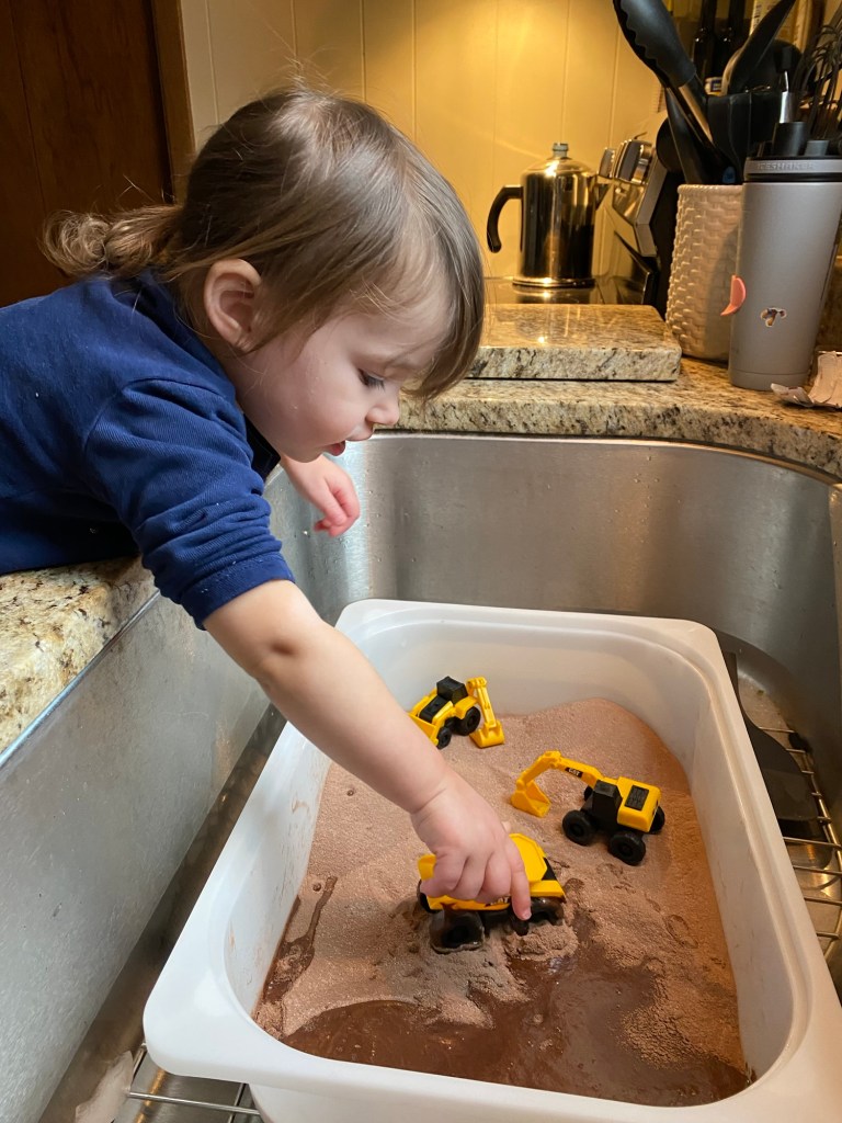 ✔️ Rotate materials. When the excitement fades, swap out the filler or add some new tools (measuring cups = instant excitement).