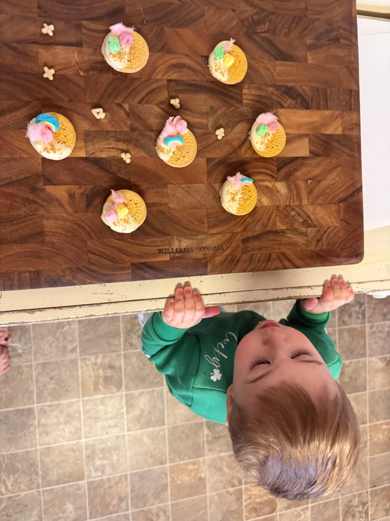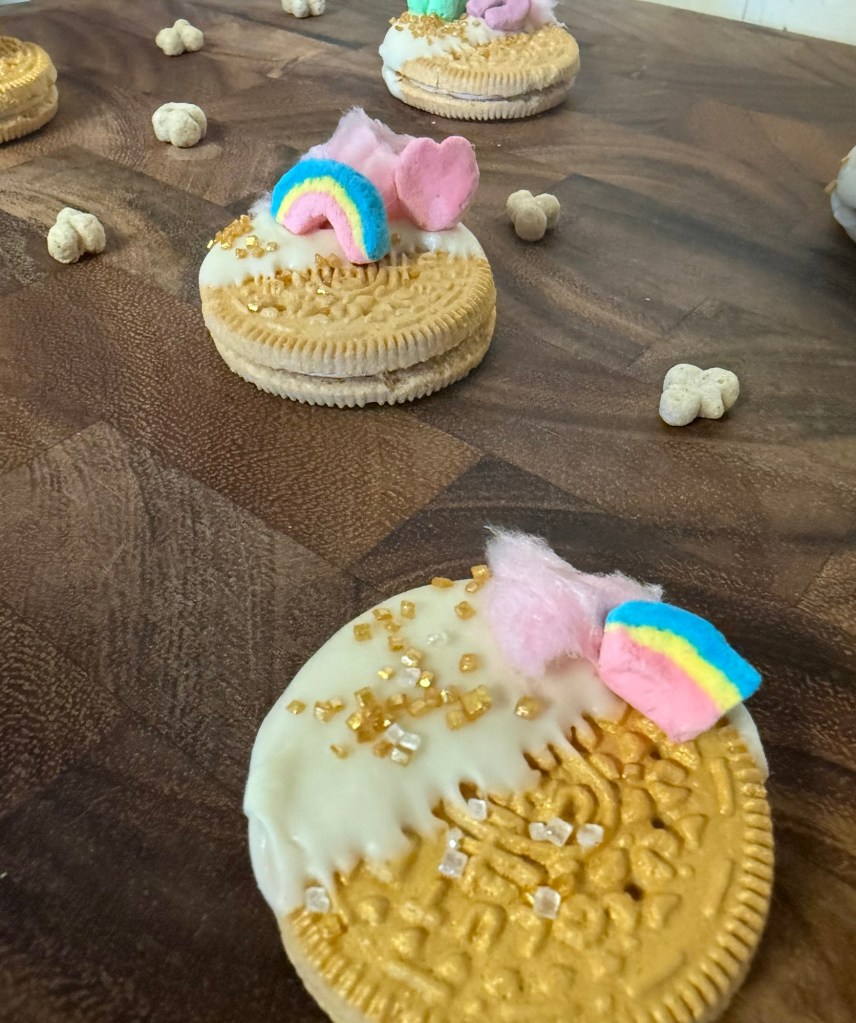 ☘️ Golden Oreo “Coins” – A fun and delicious nod to the pot of gold at the end of the rainbow. (Here is the edible spray we used!)