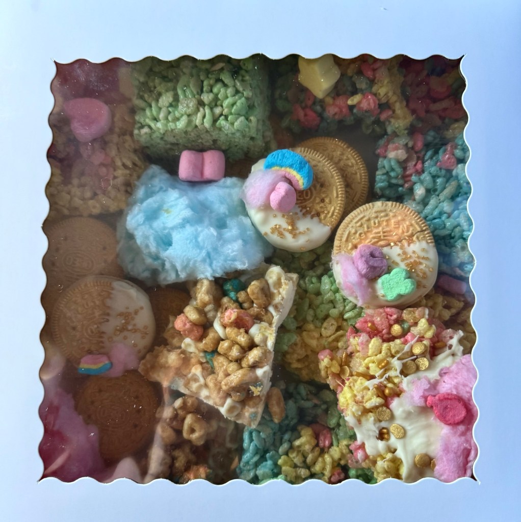 To complete the board, I added some extra cotton candy and scattered a few extra Lucky Charms marshmallows for decoration.