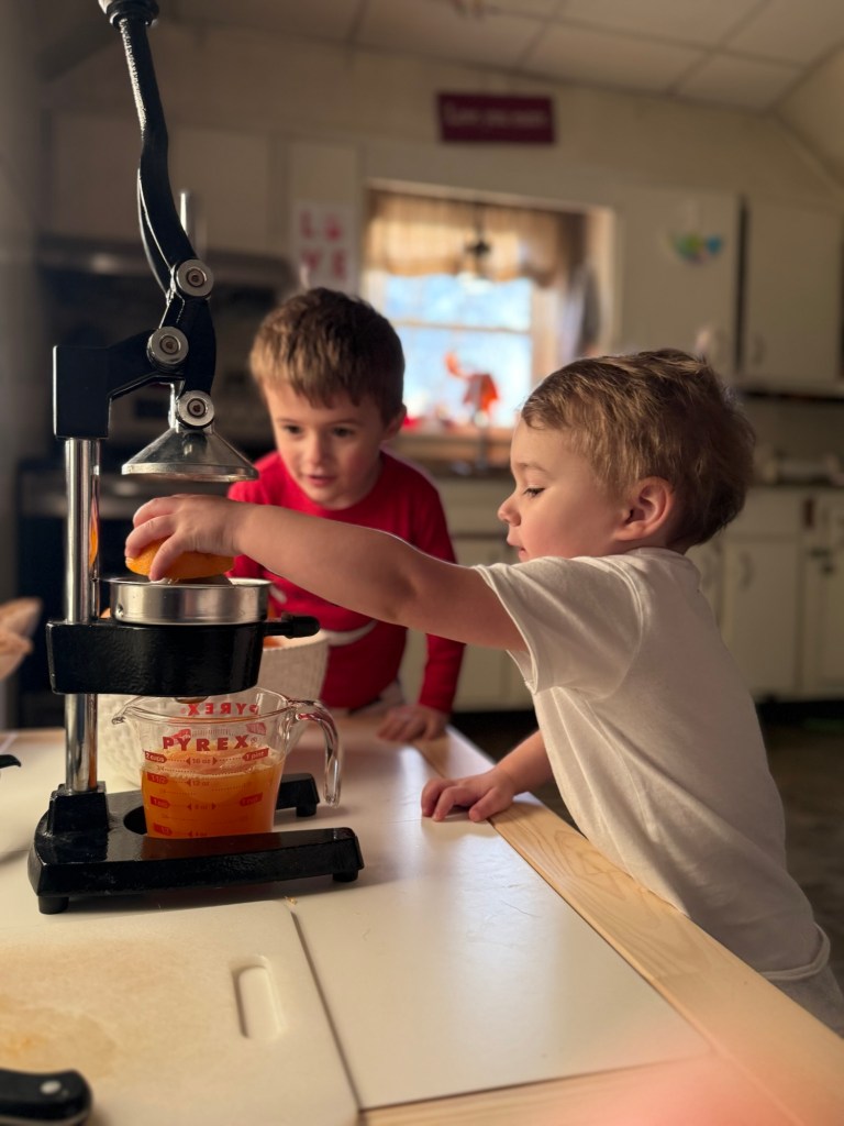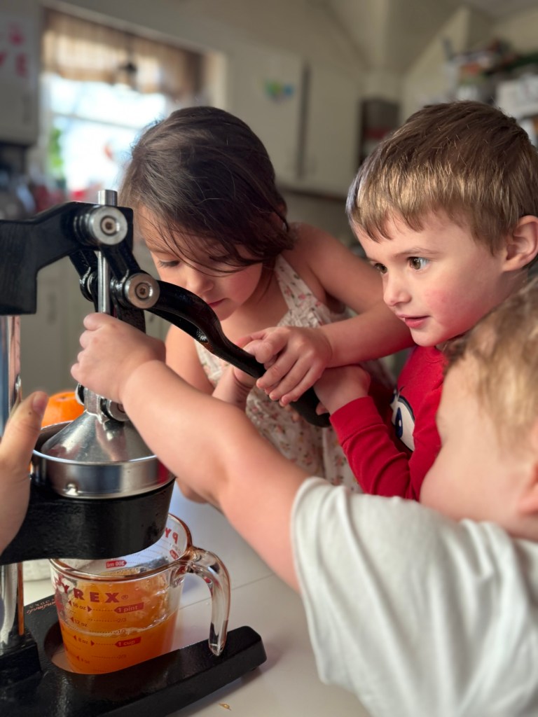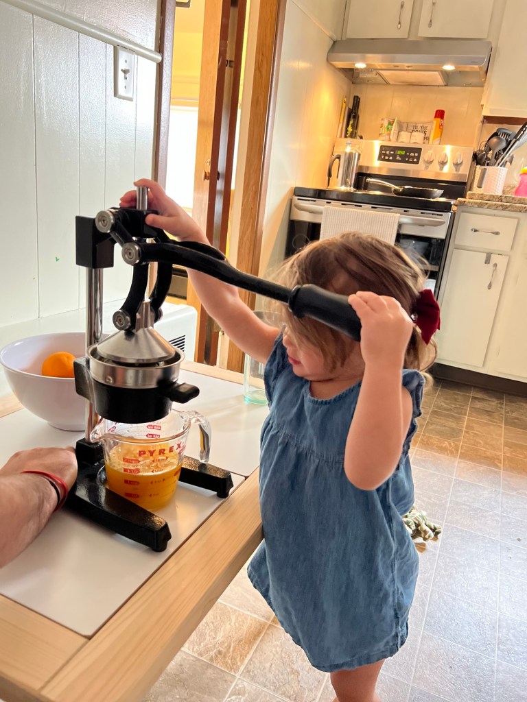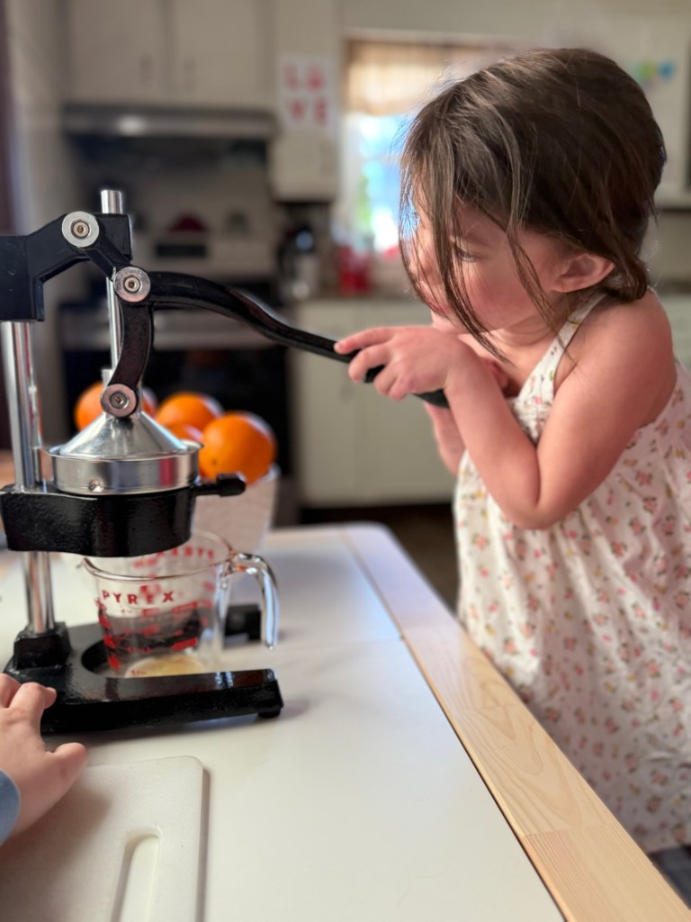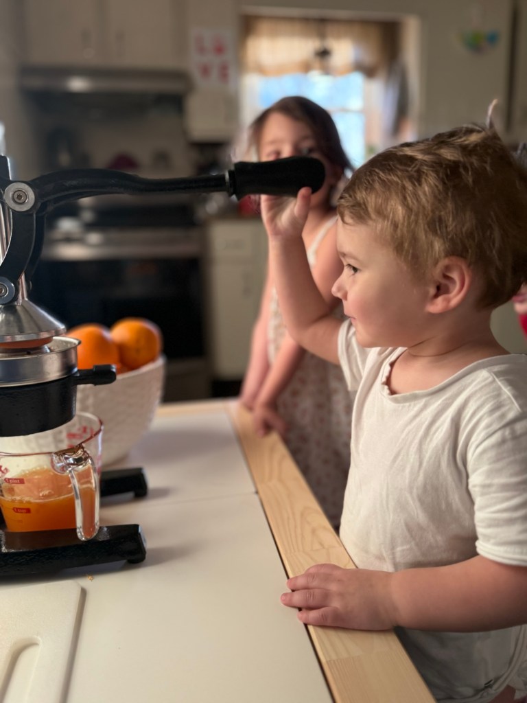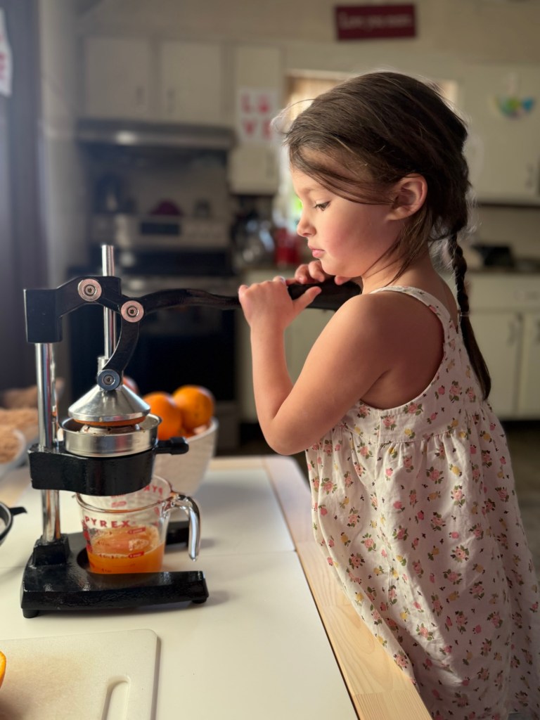 Let’s be real—fresh‑squeezed OJ isn’t something every family can do every day, and that’s exactly why we use it as a special activity and a little treat. It’s not about perfection or daily routines—it’s about creating a sweet, shared moment the whole family can enjoy together.